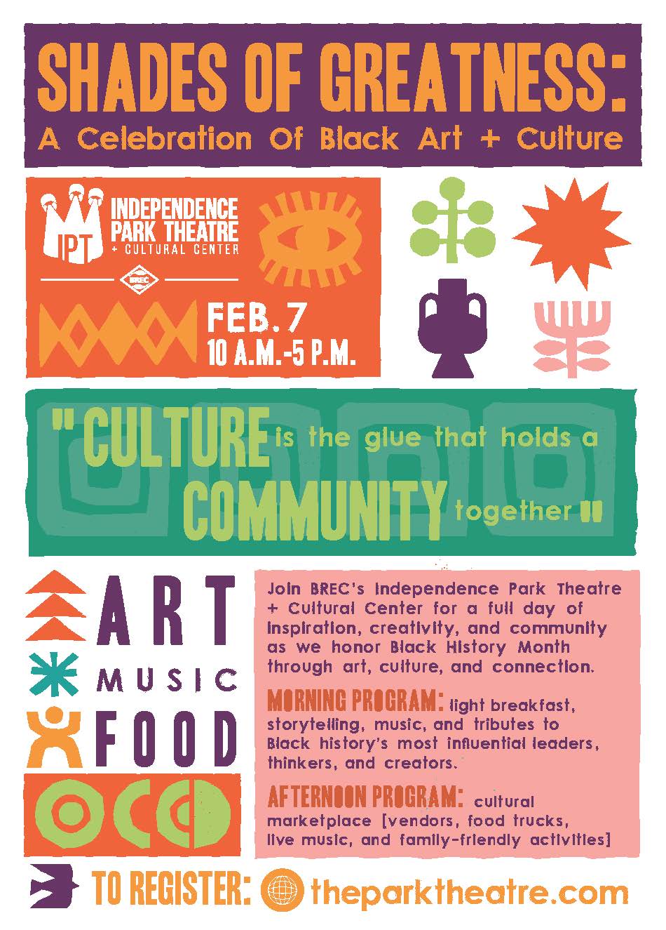 Join BREC’s Independence Park Theatre for a full day of inspiration, creativity, and community as we honor Black History Month through art, culture, and connection.